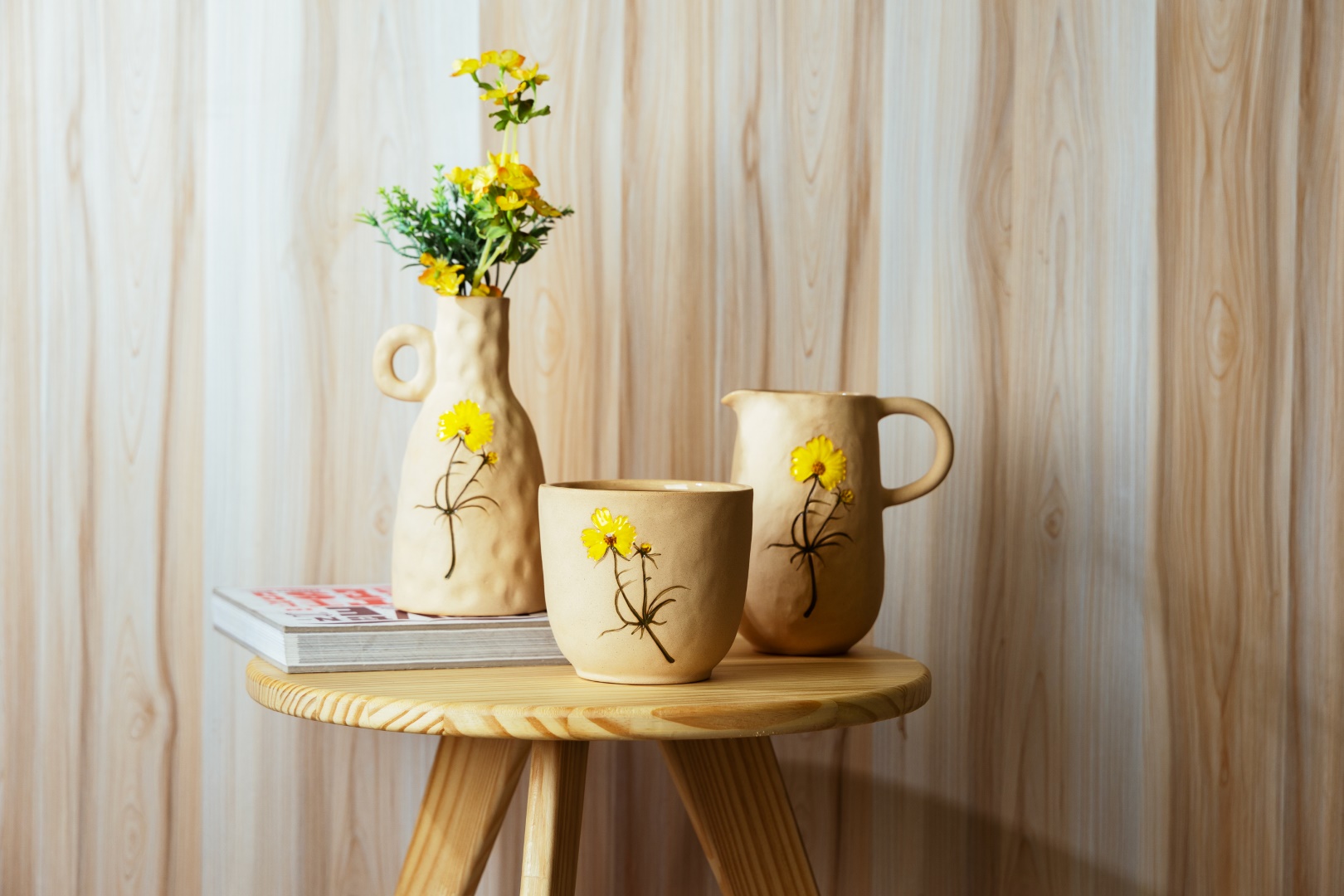 JARRO DECORATIVO DE CERAMICA FLOR AMARELA TRENTO 10,5CM X 9CM X 18CM