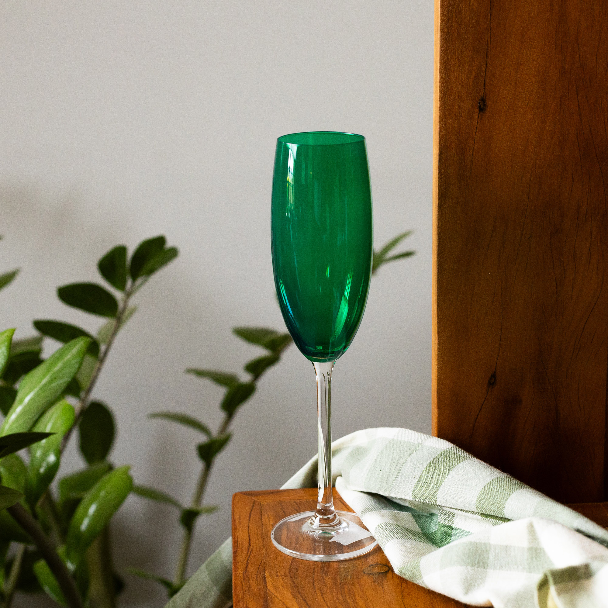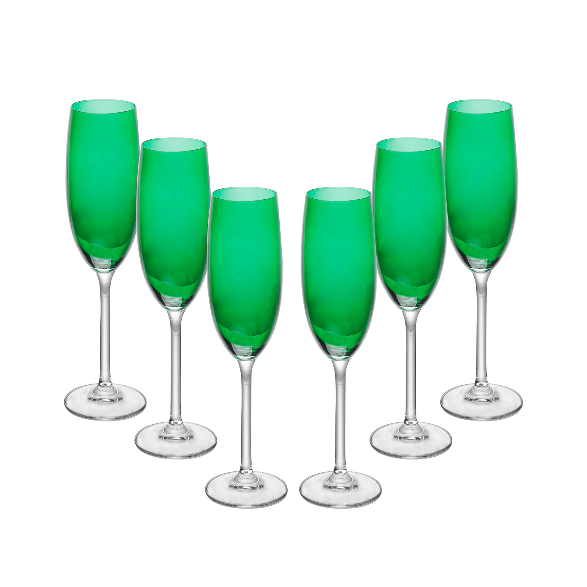 Jogo de Taças Champagne Cristal Verde Esmeralda 200ml (6 Unidades)