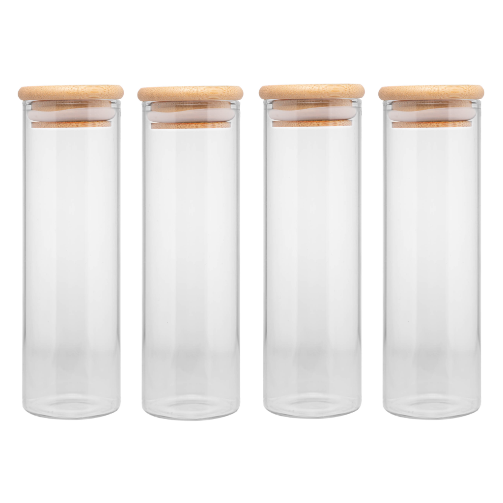 KIT 4 POTES VIDRO TAMPA BAMBU 210ML