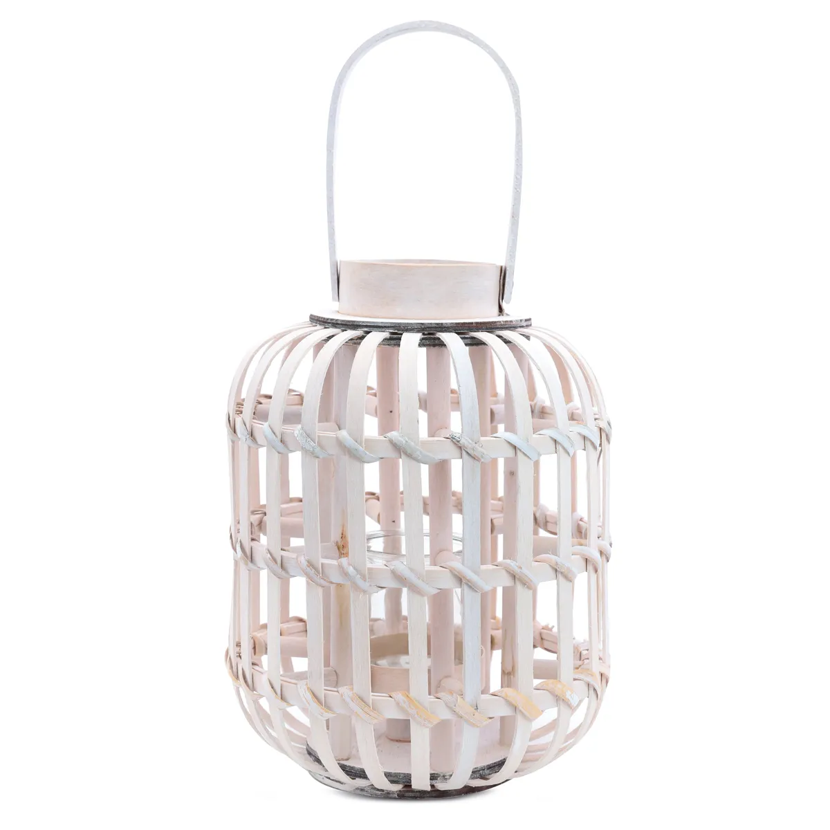 LANTERNA C/ ALCA PORTA VELA MADEIRA BRANCO 30X22X22CM