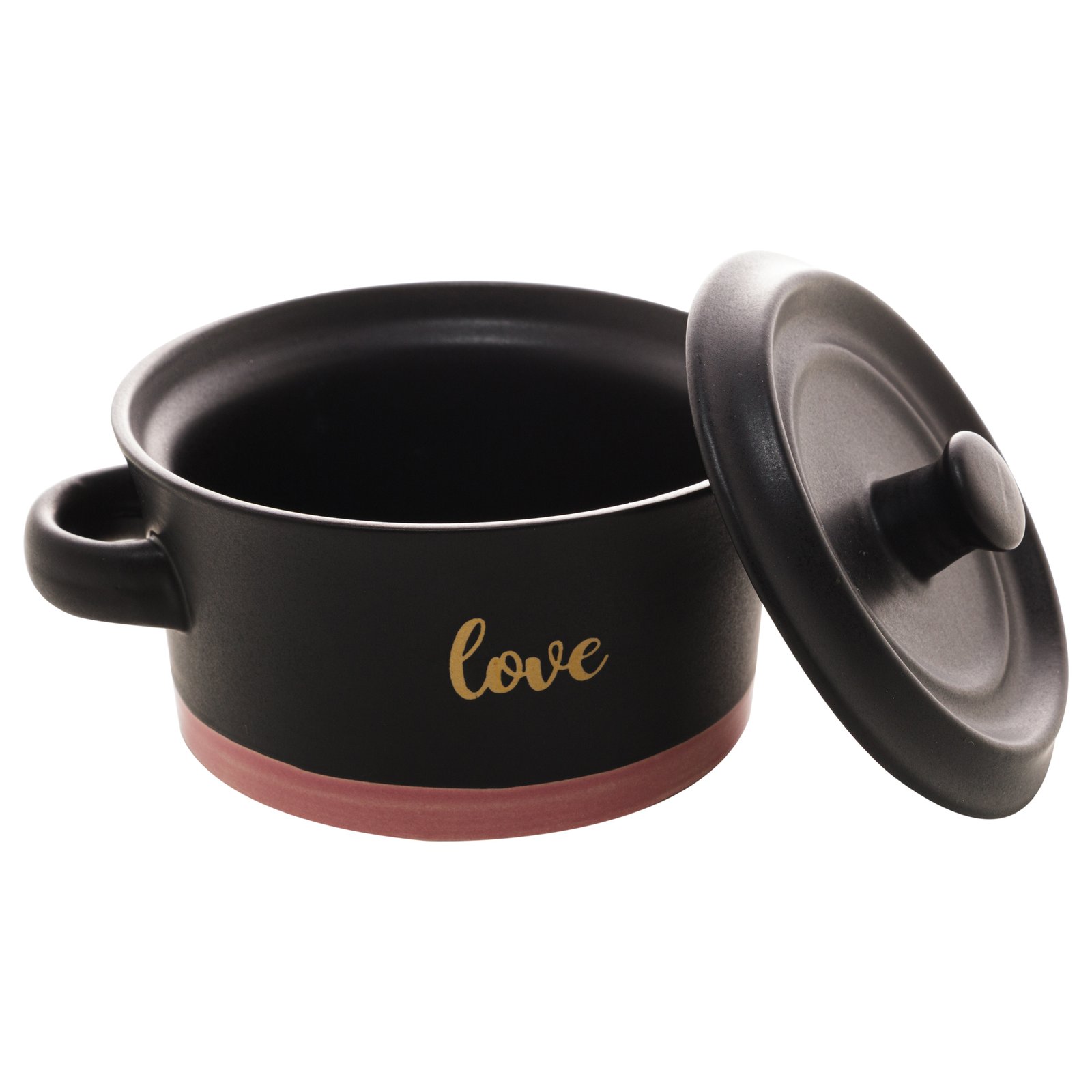 MINI CACAROLA CERAMICA LOVE PRETO MATT/ROSA 16,5×12,5×8,5cm