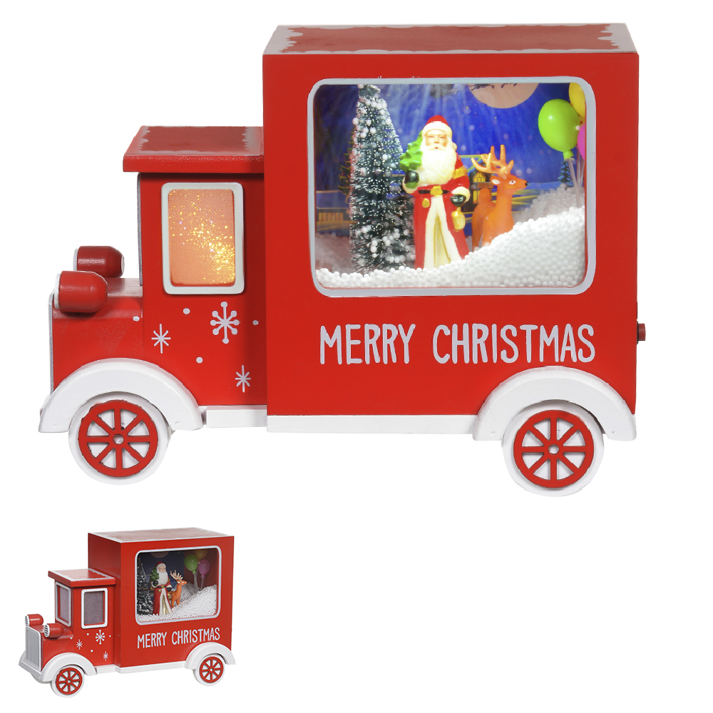 CAMINHAO NATALINO ANIMADO C/ SOM/ NEVE/ LED 22CM USB