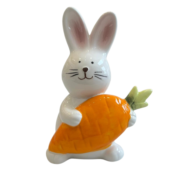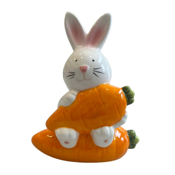 R$ 89,90ENFEITE COELHO DA PÁSCOA CENOURA CERÂMICA 13CM - Decoração Charmosa: Um coelhinho adorável segurando uma cenoura, perfeito para celebrar a Páscoa. - Material de…