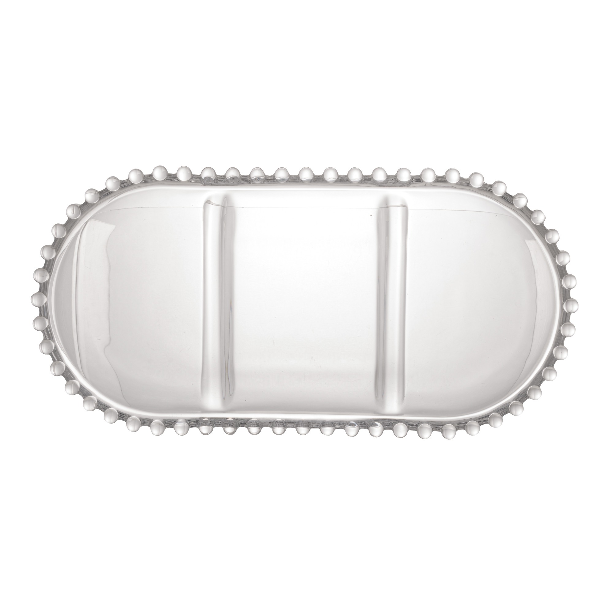 PETISQUEIRA CRISTAL DE CHUMBO C/3 DIVISOES OVAL PEARL 30x15x2cm