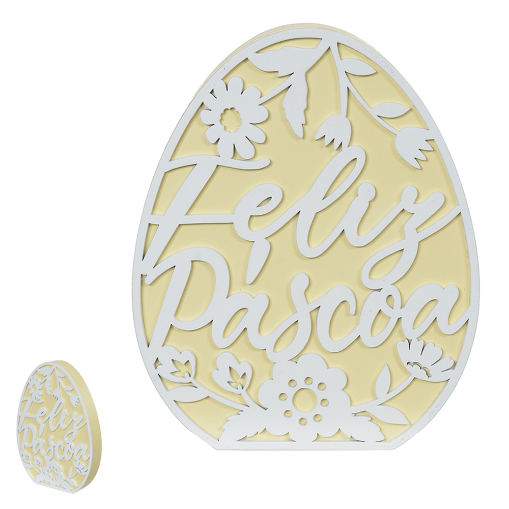 PLACA DECORATIVA OVO FELIZ PÁSCOA AMARELO(20X17X3CM)