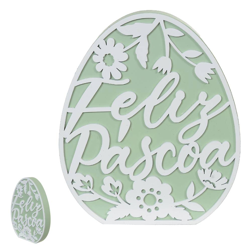 PLACA DECORATIVA OVO FELIZ PASCOA 20X16,5X2,8cm VERDE/ BRANCO