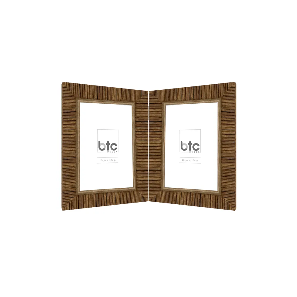 PORTA RETRATO EM RESINA NATURAL ESCURO P/ 2 FOTOS 10X15CM