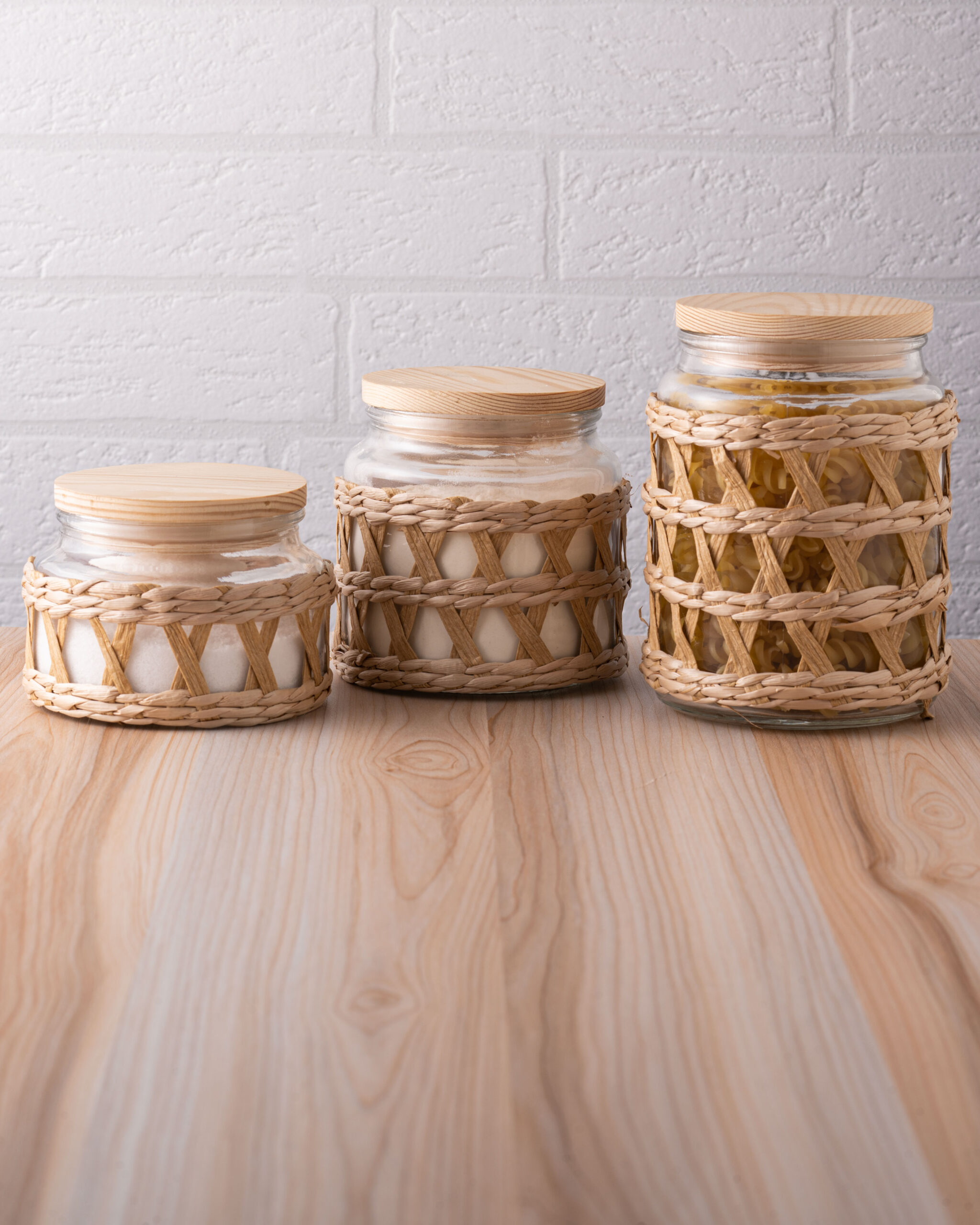 POTE DE VIDRO C/TAMPA EM MADEIRA SISAL 750ml