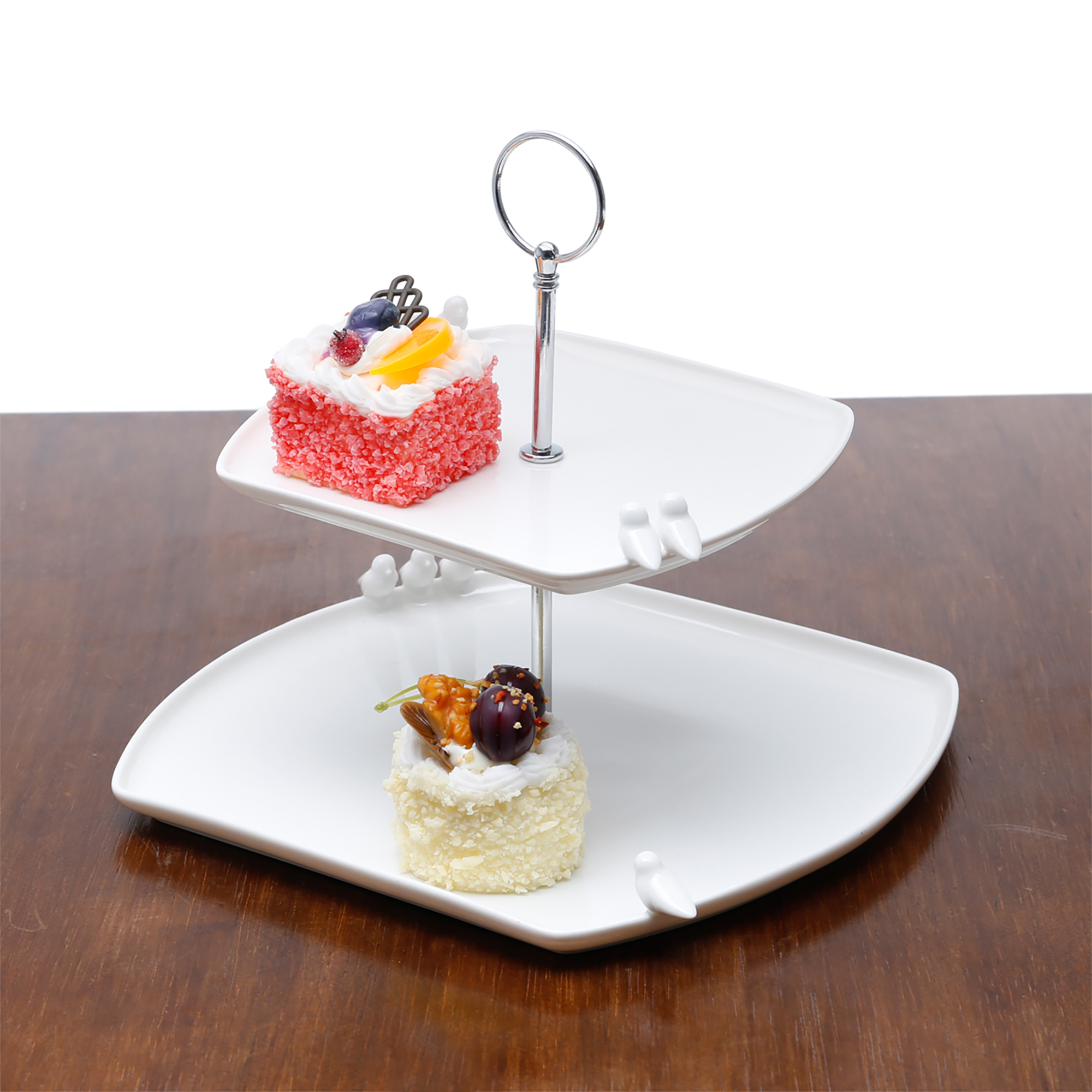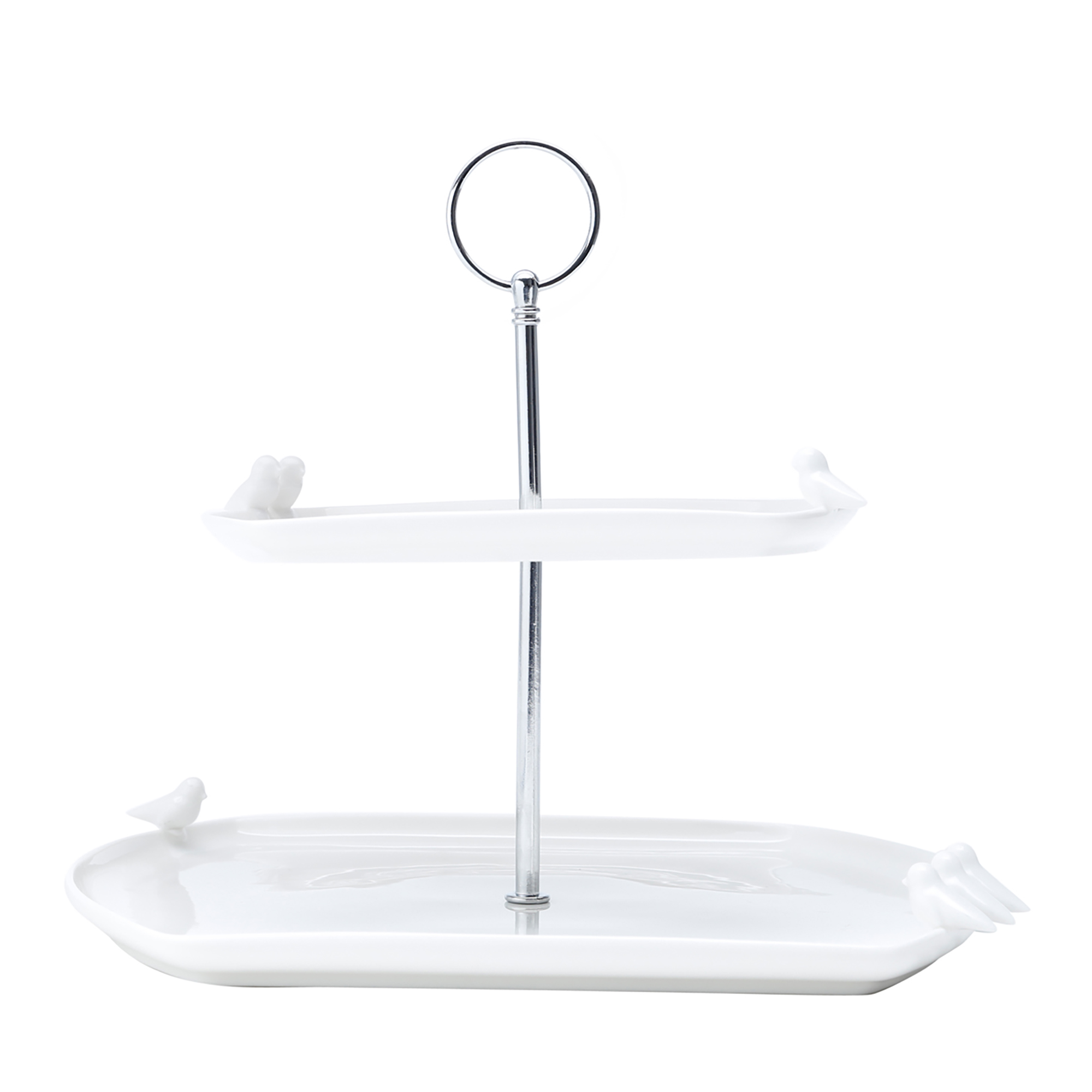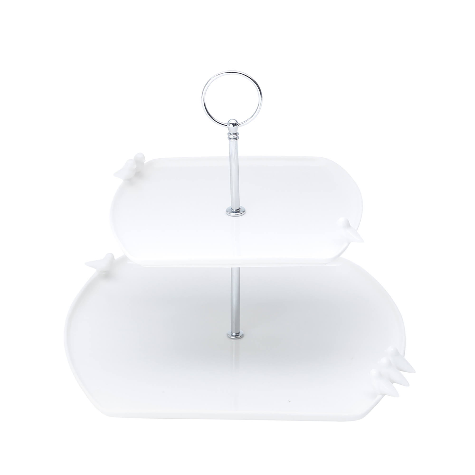 PRATO DUPLO PORCELANA P/DOCES BIRDS BRANCO 27cm x 25cm x 24cm/19cm x 18cm