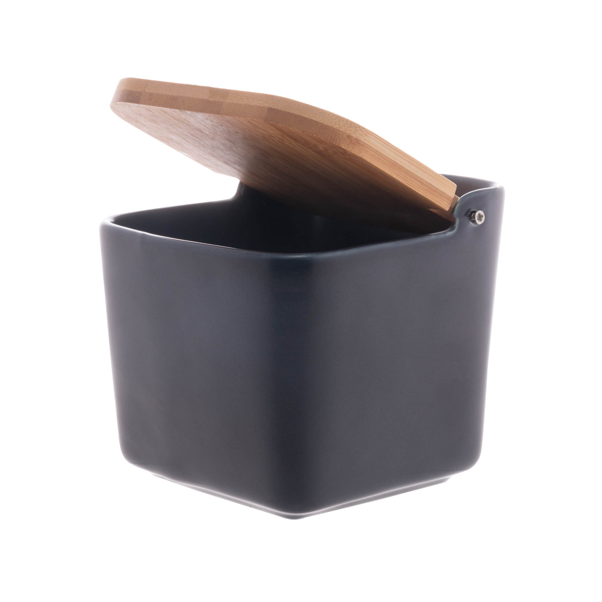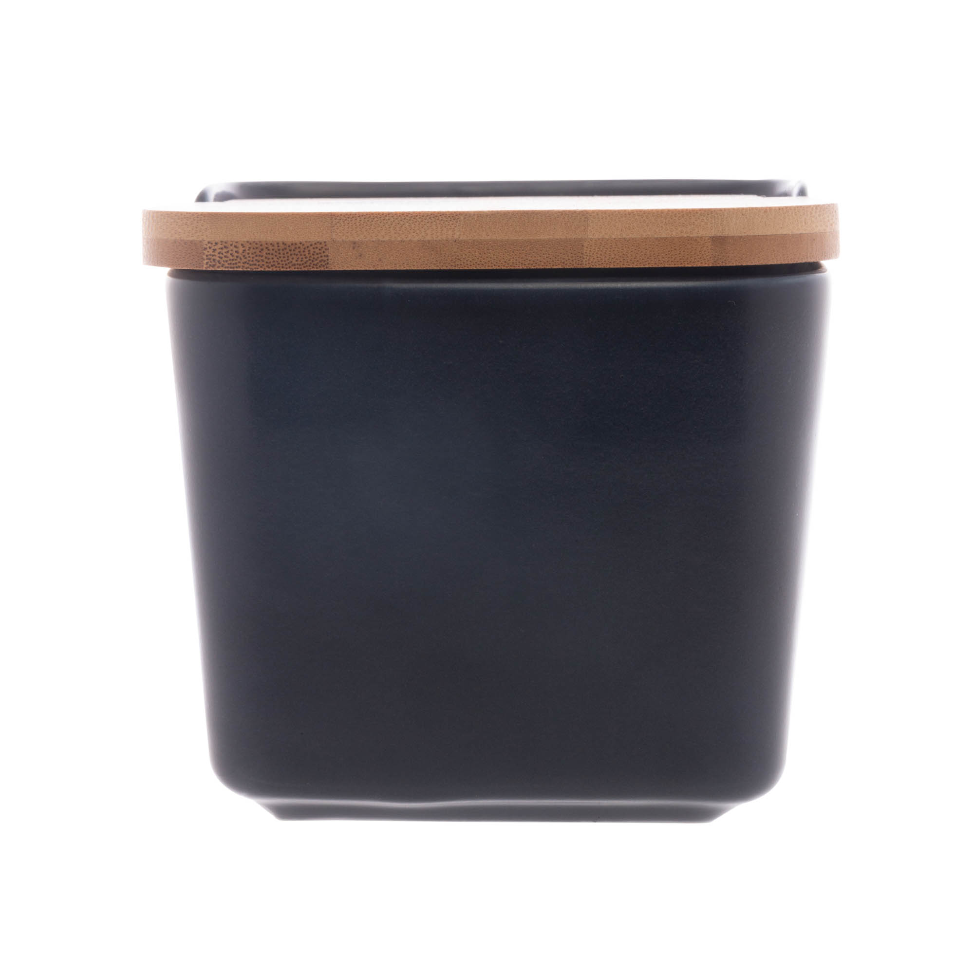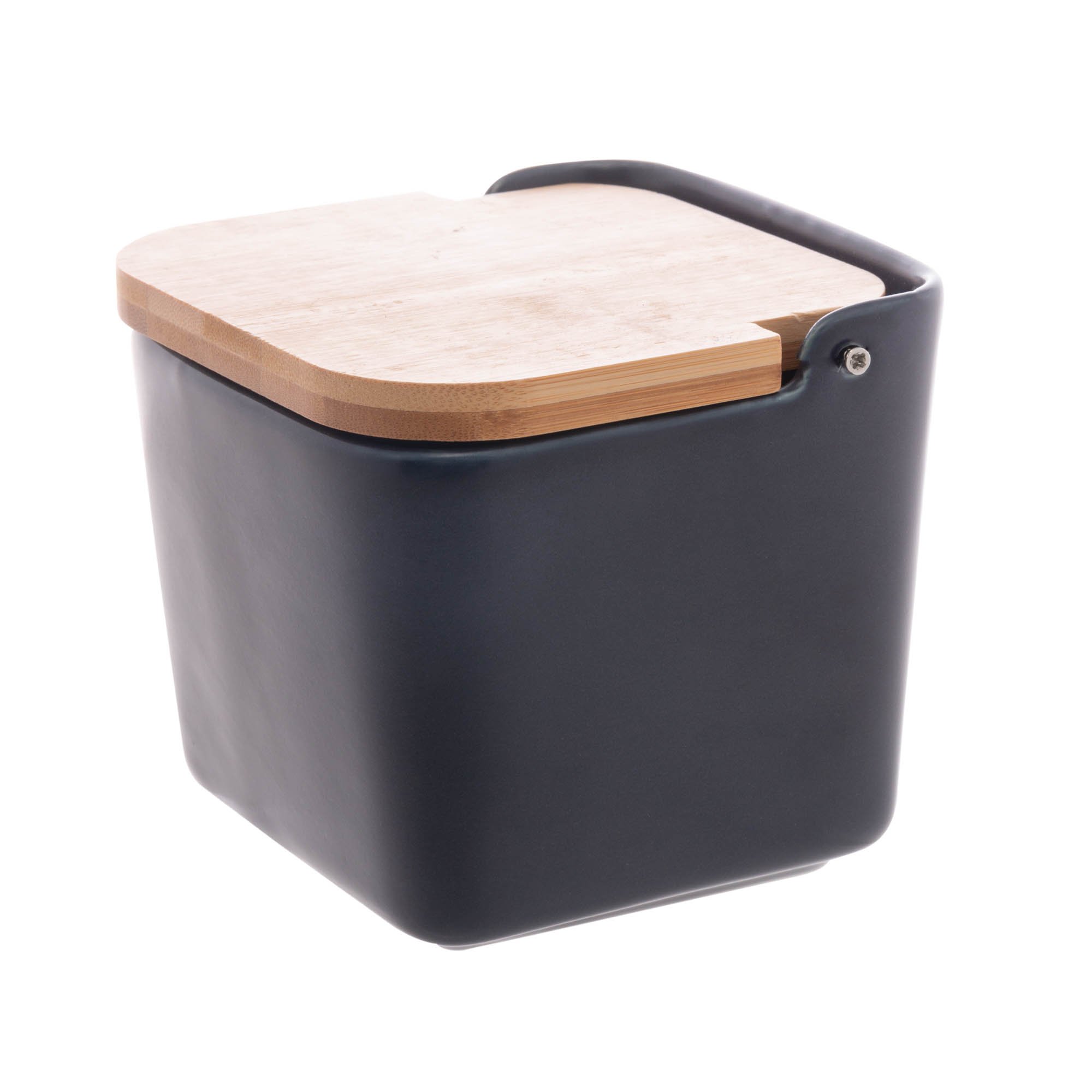 SALEIRO DE CERAMICA C/TAMPA DE BAMBU AZUL 11,5cm x 12,5cm x 11,5cm