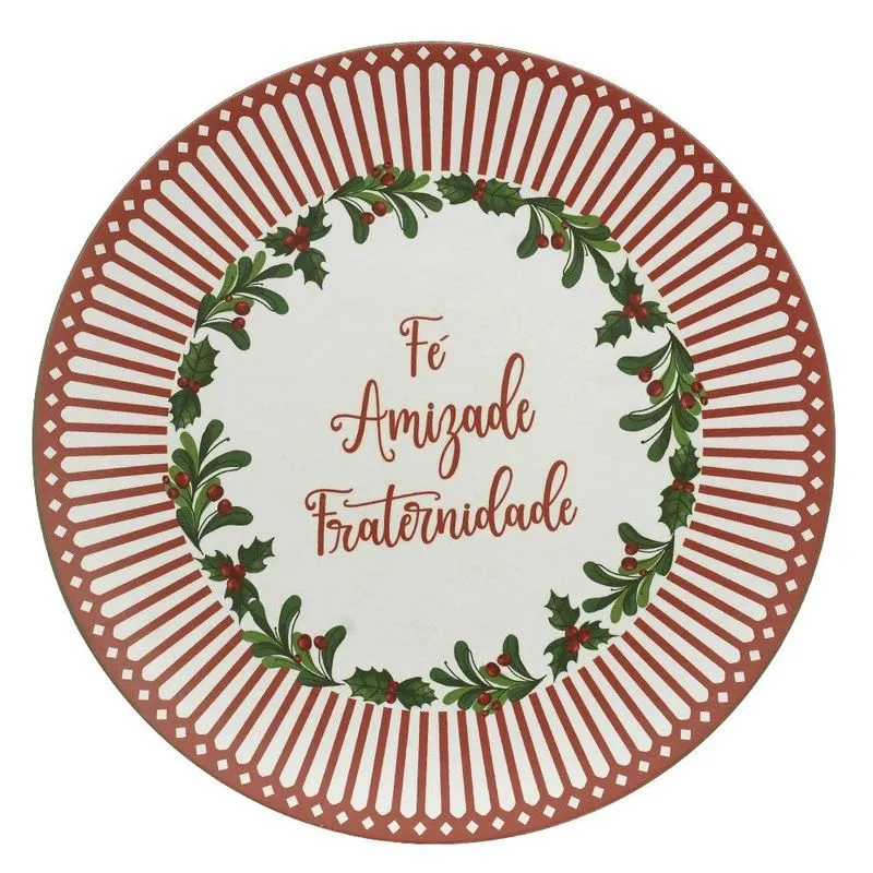 SOUSPLAT NATAL DESEJOS VERMELHO E BRANCO 33CM