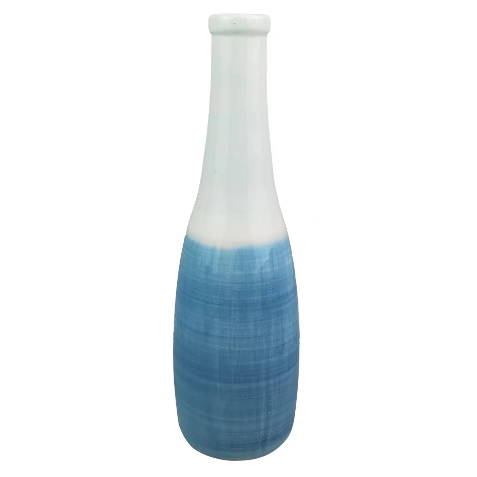 VASO DE CERAMICA AZUL E BRANCO 10X28CM