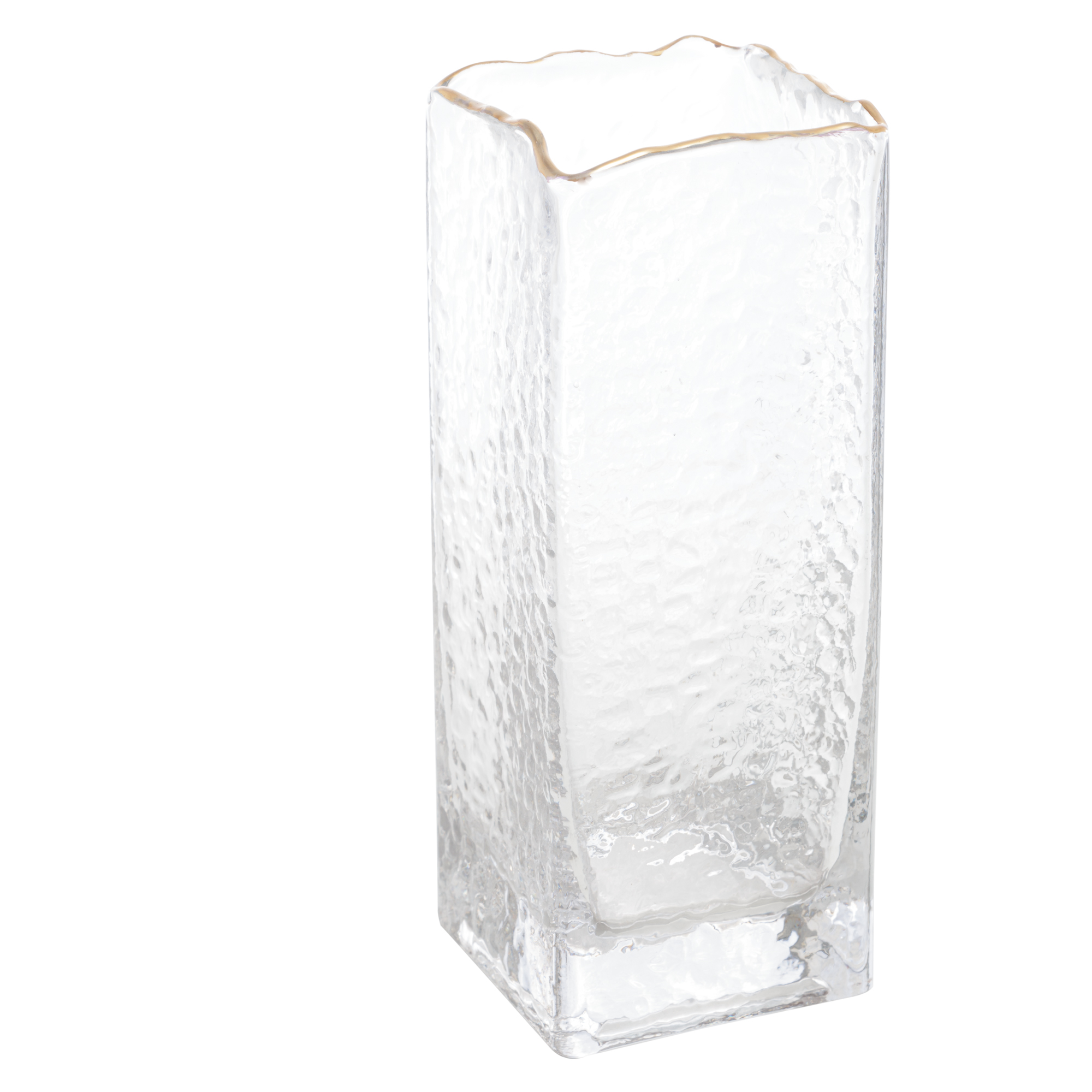 VASO DE VIDRO COM BORDA DOURADA TAJ 8CM x 8CM x 20CM